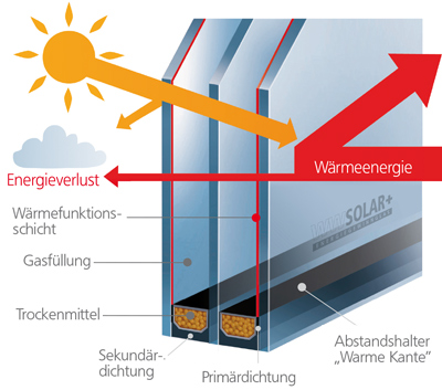 WWSolar+, das Energiegewinnglas, bietet neben einer hervorragenden Wärmedämmung sogar die Möglichkeit, Wärmeenergie durch Sonneneinstrahlung zu gewinnen, da die Sonnenstrahlen beinahe ungehindert in den Raum gelangen und dort ihre Wärme abgeben können.